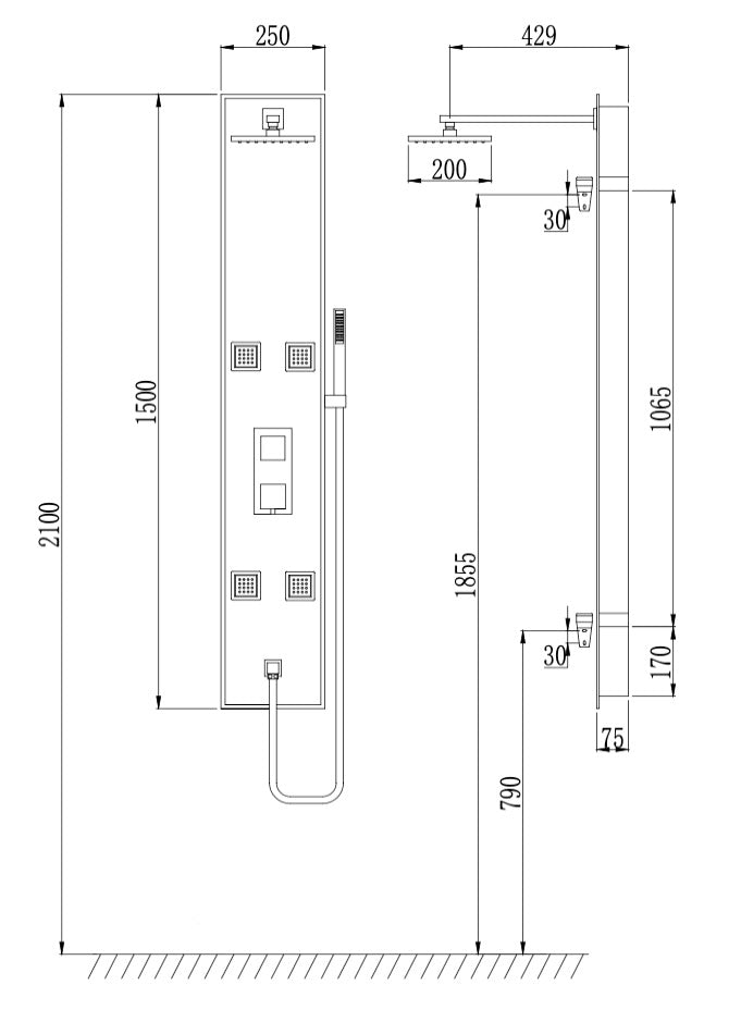 Bring elegance and modernity to your bathroom with the TG24 model shower column. Designed with refined black glass, this column offers a perfect combination of contemporary design and performance. It incorporates advanced features, including a rain shower, a phone shower and body sprays, to provide a shower experience that is both luxurious and revitalizing.