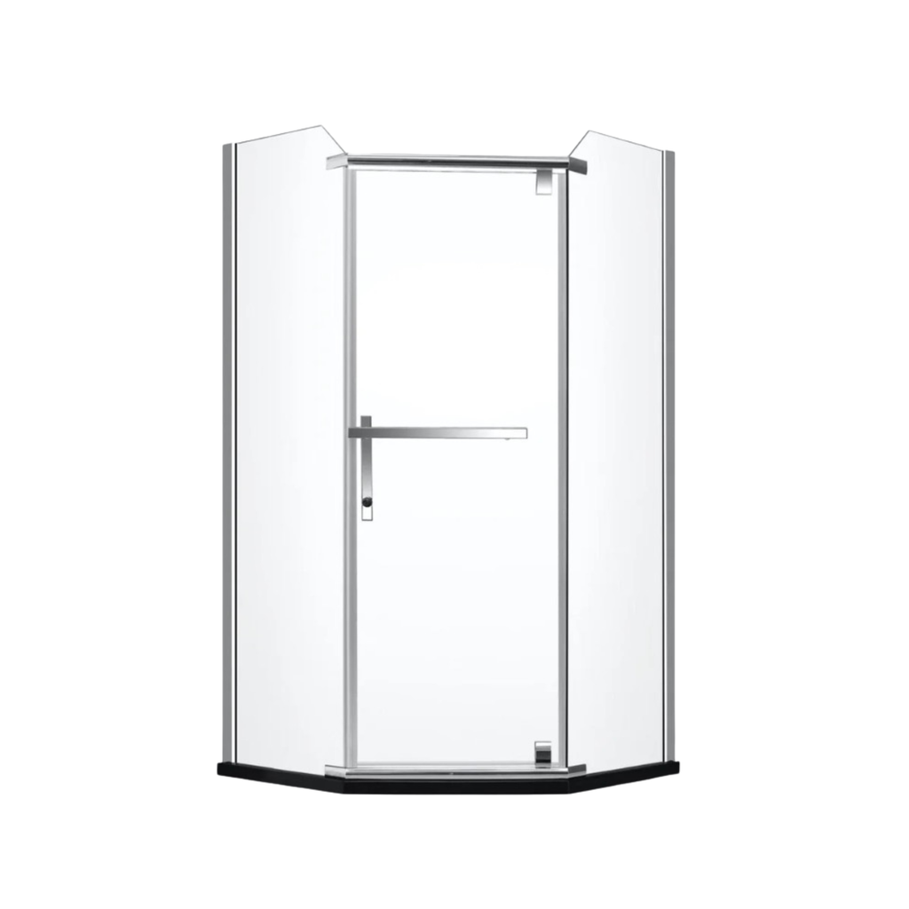 The ZITA neo-angle shower model combines modern design and functionality. Available in dimensions of 36x36 inches or 42x42 inches, it adapts perfectly to different bathroom sizes. The price includes a sturdy shower base and stylish chrome moldings. With its modern square lines, the ZITA shower brings a contemporary and sophisticated touch to your bathroom space, combining aesthetics and practicality for an exceptional shower experience.