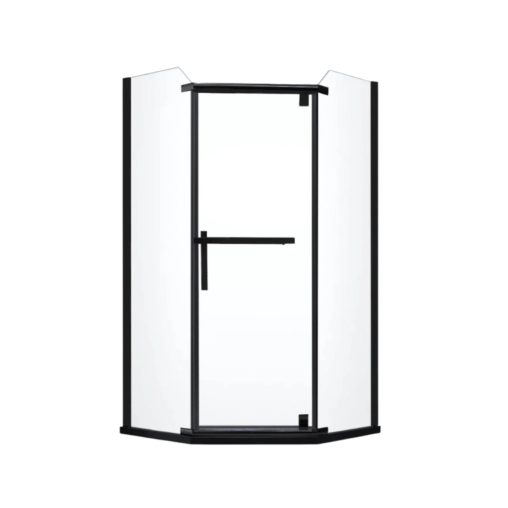 The ZITA neo-angle shower model combines modern design and functionality. Available in dimensions of 36x36 inches or 42x42 inches, it adapts perfectly to different bathroom sizes. The price includes a sturdy shower base and sleek matte black trim. With its modern square lines, the ZITA shower brings a contemporary and sophisticated touch to your bathroom space, combining aesthetics and practicality for an exceptional shower experience.
