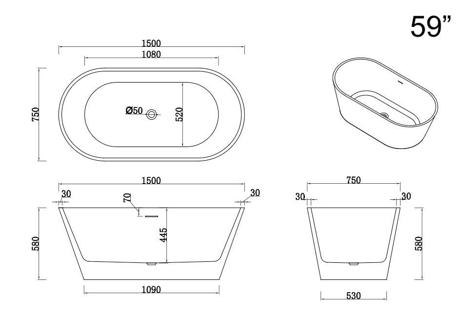 - Trop-plein intégré : Le trop-plein intégré assure votre tranquillité d'esprit en prévenant tout risque de débordement, vous permettant de vous détendre en toute sérénité lors de votre bain.